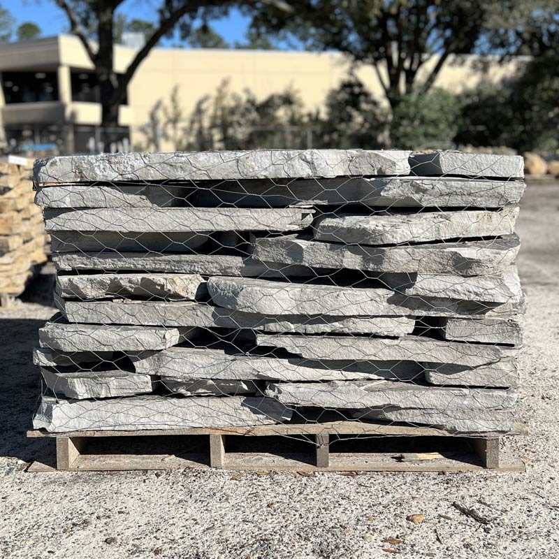 Color & Description: Soft light grays with very little cream and brown accents. Thick flagstone approximately 1.5-2.5". Very flat, not much depth variation, easy to walk on and set. This is a very neutral color and will work with a wide range of home colors and styles.